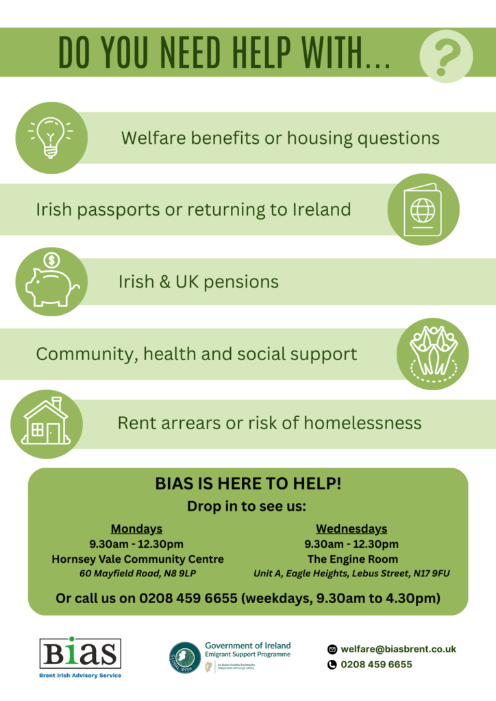 Every Wednesday from 9.30 to 12.30, our friendly advisers will welcome you at the Engine Room in Tottenham Hale, Haringey to help you with any welfare or housing questions.